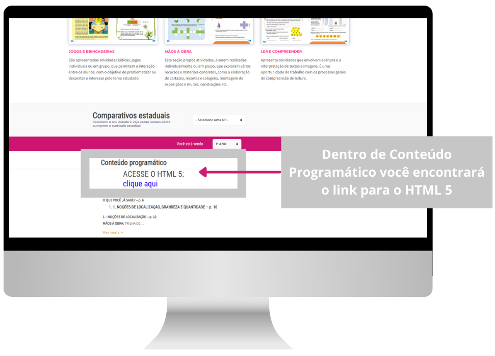 1. Na página de cada obra, deslize a rolagem até a área de Conteúdo Programático